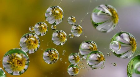 Harmatcsepp a lombokon, Hajnalfény a fák közt átdereng.